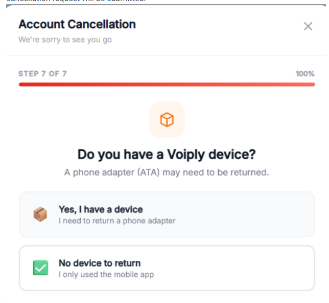 If you have a device (ATA/phone adapter): Select Yes, I have a device — I need to return a phone adapter.