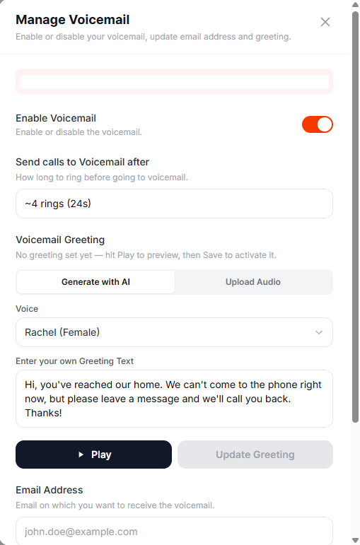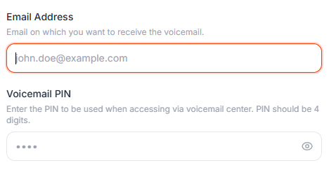 Email Address — Confirm the email on which you want to receive voicemails.