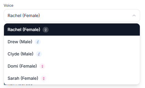 Choose a voice from the dropdown.