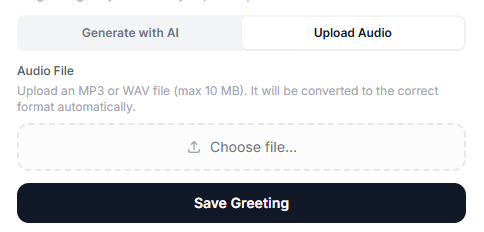 In the Voicemail Greeting Message section, choose how you want to record your greeting: