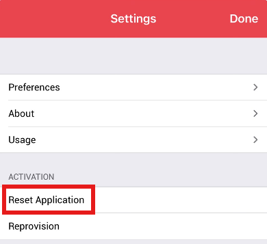 2. Tap on Reset Application and confirm:
