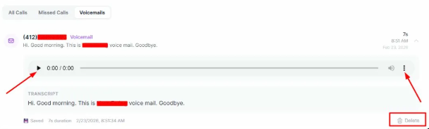 - 🗑 Delete the voicemail using the Delete button at the bottom right
