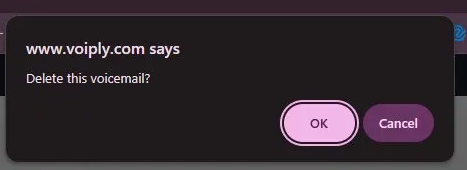 - A confirmation prompt will appear asking "Delete this voicemail?" — click OK to confirm or Cancel to go back
