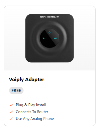 - Free option: The Voiply Adapter is included at no extra cost with your plan