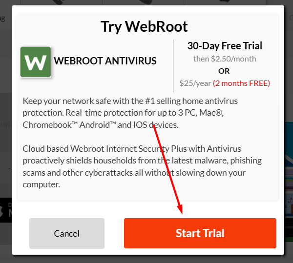 In the pop-up window, click Start Trial to begin your 30-day free trial.