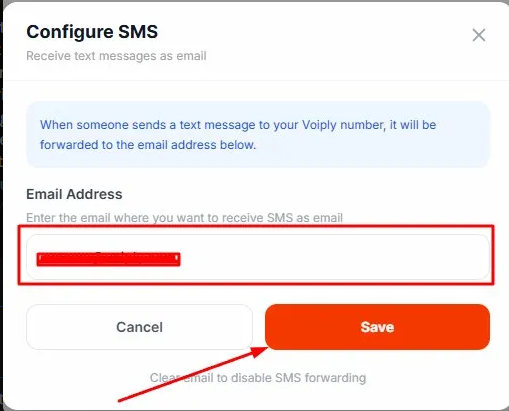 Note: When someone sends a text to your Voiply number, it will be forwarded to the email address you enter here.