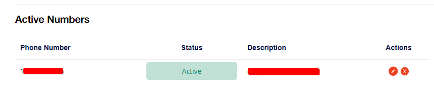 The Active Numbers section shows all phone numbers currently assigned to your account.