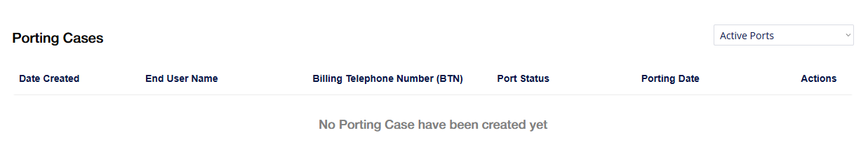 If no port requests have been submitted yet, you’ll see a message indicating that no porting cases have been created.
