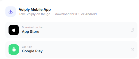 You can also download directly from your Voiply Residential Portal. Log in and navigate to the Voiply Mobile App section, then tap the App Store or Google Play tile.