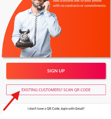 - Tap Existing Customers? Scan QR Code on the login screen.
