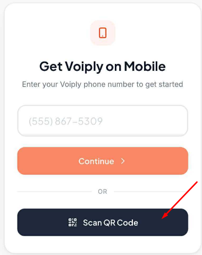- On the Get Voiply on Mobile screen, tap Scan QR Code.