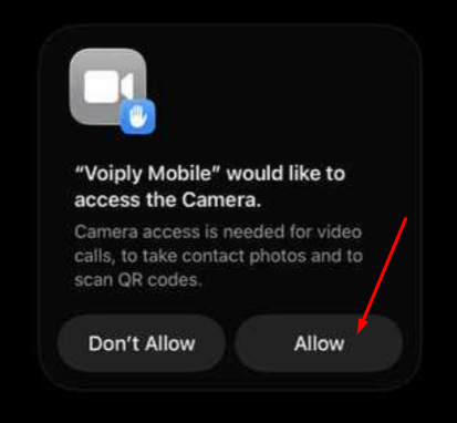 - A prompt will appear asking for camera access. Tap Allow.