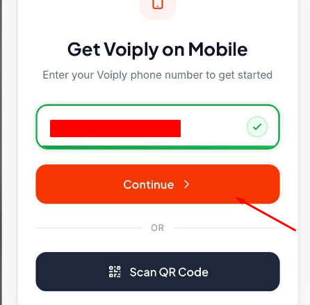 - On the Get Voiply on Mobile screen, enter your Voiply phone number and tap Continue.