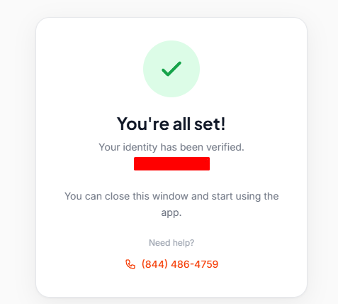 - The app will verify your identity. Once confirmed, you will see a "You're all set!" screen.