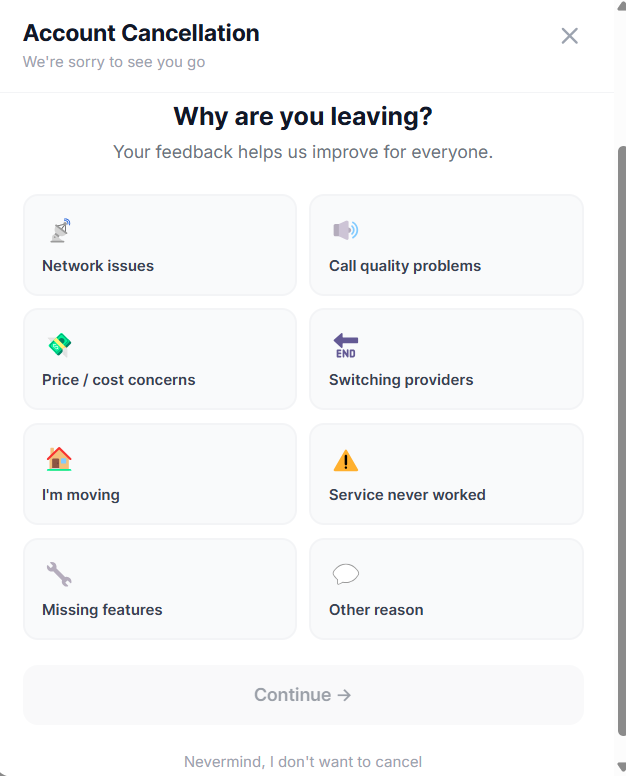 We'd love to have you back if you ever change your mind. Visit [voiply.com] to explore our plans.