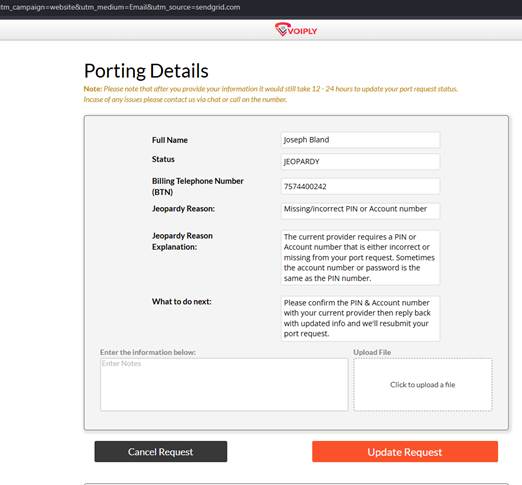 Update your port request with the correct details by clicking Update Port Request in your email.