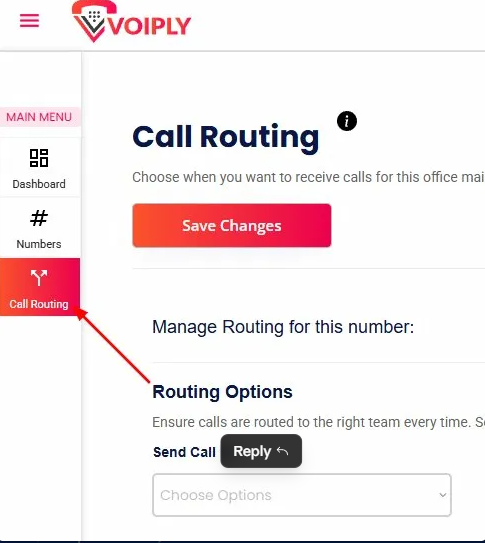 2. Navigate to Call Routing From the left-hand menu, click on Call Routing.