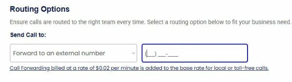 Whether you want to send calls to your cell phone, home phone, work phone, or any other US or Canadian phone number, our service makes it simple. Note that call forwarding is billed at a rate of $0.02 per minute, added to the base rate for local or toll-free calls. Below are the steps to enable Call Forwarding on your number.